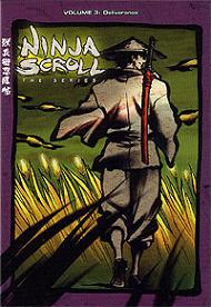 Jubei is back, this time he gets swept up in a battle between two ninja clans for the titular Dragon Stone that is in the possession of a feisty girl who lived in complete isolation until the ninja clans descended on the village like a ton of bricks, quiet literally, one of them probably weights a ton. Jubei and the girl meet Dakuan, the little monk governement spy from the OVA and a theif who has designs on both the Dragon Stone and the girl. They go up against the Ninja Scroll trademark of really bizarre villains, a giant robot who has two wheels in his hands so he drives about crushing everything in his path, a one armed swordsman who has a crossbow in his arm, a spider chick who is her brother, and a chick who is a tree. But don't get too attached to any of these villains, except the tree chick, they all die shortly after they're inroduced. I like the series a little more than I liked the OVA, but it has the same flaw that they make so many interesting characters but they kill them off too quickly, there is no villain development and when there is no villain development and without good villains there is no good conflict and the story suffers. My favorite character is Dakuan, nothing more fun than crazy old government spy monks. |
