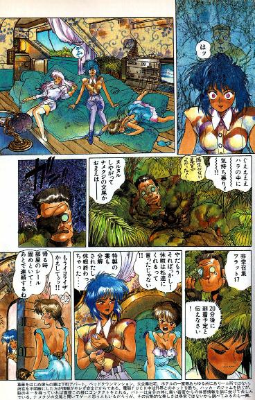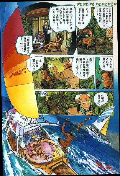 Ghost in the Shell One of the very first manga I ever got was Ghost in the Shell Number 1 in Colorado. It was one of the early releases of manga from Dark Horse in the days before Viz, Anartica Press, and ADV. One rather funny note for this is the fact that they cut out a piece of it before releasing it here. Of coures we all know what piece it is, the lesbian sex scene. When removed the whole scene isn't the same. If you follow the links below you can see all four original pages. Sorry they are still in Japanese. |