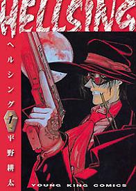 Hellsing Volume 01 The Hellsing Organization, an group set up to fight vampires in Great Britian. Their top agent is Alucard, son of Dracula. The British Isles are plagued with a rash of vampire attacks, they are causing havoc and creating ghouls everywhere. The police try to stop it but the team they send in is all but destroyed, except for Victoria Seras. At one point Alucard traps the vamp but he takes Victoria hostage, Alucard calmly asks if Victoria is a virgin and after her initial shock and horror she says yes. So he shoots her through the right lung killing the vampire and turning Victoria into a vampire in the process. Later in the issue Alucard comes up against the Catholic Church's number one vampire slayer an Irish Priest. The big problem with that is they phonetically wrote his dialogue, he speaks Irish, which unless you have had some experience with it will be totally lost. This is great, bloody, exciting with a little humor tossed in for good measure. The best is the quick little one shot at the end of the volume that involves a nun with split personalities, one who is meek, the other is a total killing machine. |