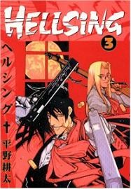 Hellsing Volume 03 Alucard, Victoria, and their new mercenary team pack up and head for South America. Of course this means they have to pack Victoria up in a coffin, something she really isn't all that happy about. Once they get down to South America, they barely have enough time to get checked into the hotel and get some coffin nap time, Victoria has a vision, in the form of Harkonnen, yes the fat guy from Dune, he tells Victoria to wake up. She does just in time to see helicopters circling the building and probably half of the entire Brazilian police force around the building. They turn on the TV, yes the great informer and educator, and they learn that they are apparently terrorists that killed several hotel employees and tourists and the Brazilian special forces are moving in. But the reader quickly learns that the cops aren't doing this alone, they are simply puppets for a group of Germans. You can tell this because of Vats and Veres instead of Whats and Wheres. The funniest moment in the entire manga probably wasn't meant to be funny but when you get your first good look at the Nazi mastermind behind this far reached wicked conspiracy, the first thought in my head was Elton John, yes Elton John has been transformed into a power made Nazi. In any case the cops move in, a real big mistake because Alucard basically mops the floor with these poor slubs and kills a few squads before hurling several out of the hotel to impale on the flag poles in front of the posh hotel much like his forward spelled namesake, Dracula or Vlad the Impaler. There he meets the Dandy, a vampire that throws cards, kinda like Gambit from X-Men means the Paper from Read or Die with a healthy psychotic streak. The two battle, killing many innoccent bystanders, mainly cops and news reporters in any case. All the while Victoria and the mercenaries are trying to get to the helicopters so they can get the hell out of Rio. But when is all said and done Alucard can simply say, 'Blame It On Rio!' Of course at the end of the manga we get another installment of Heinkel and Yumiko, Vatican Wetworks Squad and another fun blood soaked adventure. I think this manga beats Berserk for just simple carnage and body counts, I mean crap they really get the bodies flying in this one. Great read, fast pace and full of blood guts and vampire action. |
