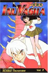 Inu Yasha 01 This is the new and improved version of a girl falling down a well and ending up in feudal Japan. Now certain people have bitched and moaned about how they have changed the layout of the VIZ Manga. It is now a little smaller in size and they have redone the covers, but they have also dropped the price, which well makes up for a few minor cosmentic changes. Rumiko Takahashi does it again, this time with a little more ghosts and sorcery than Ranma. I really like how in this one, both Kagome and her mother have to pull Inu Yasha's ears when they first meet him. If I was Inu Yasha I would carry a large sign that says 'Don't Pull the Ears.' I am really curious to see how far the manga goes as compared to the anime. The manga is still on going in Japan as far as I know but here it is only up to 13 tankouban so far. If the manga goes as far as the anime it could be a rather ridiculous amount. |