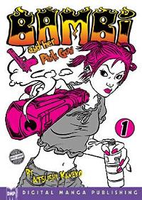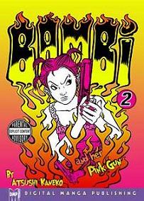 Bambi and Her Pink Gun Volume 01 The word is out on the streets: a reward of five million dollars to the opportunist that wastes the courier calling herself Bambi and returns her living cargo. Skull suit psychos, gold-toothed Elvises, Derringer-packing grannies and all the other scum in these badlands could care less whether Bambi is kidnapping this toddler she christened "Pampi" or if she's snatching him back from his captors. With a pink gun in one hand, and a leashed Pampi in the other, can antihero Bambi's huge ego and formidable gun skills hold off an army? You bet she can, whoever she comes up against she cuts through them like a hot knife through butter. I love this series, especially Bambi, she isn't interested in anything but her own ass. I love how she gets out of many of these tight squeezes with the various and sundry gun packing killers by using the kid as a shield because the bounty clearly states that the kid can't be harmed or the 5 million bounty is worthless. The action is great, especially when you meet Gabba King, this crazy fanged Dracula meets Elvis who Bambi stole Pampi from in the first place. He is a psycho Elvis from Hell who gets off beating a room full of naked women to a pulp. This is the violent bizarreness that fills the manga. Bambi is a interseting character who is only interested in herself, she only eats organic foods and thinks sex is a violence of her temple of a body. She is totally selfish and only cares about Pampi because she has been hired by these shadowy guys called 'Old Men' to bring the kid to them. The kid is a total mute who likes junk food, he is probably some sort of world class genius or puzzle solver or something because all he does is eat and never speaks or does anything. Great manga, really different, lots of crazy action in a very unique Japanese style wasteland. I am looking forward to the next volume a lot, the cowboys have Pampi and now Bambi has wheels. |