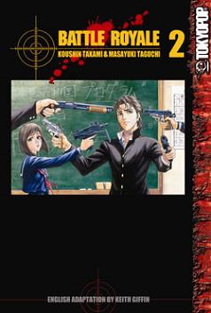 Battle Royale Volume 14 Shuuya, Shogo, and Noriko face off against Kuriyama. Car chases, gun battles, and we finally learn where Kuriyama evil disposition comes from. They certainly do give you a whole lotta bullets in this game, but not a creative array of guns. Noriko saves the day and Kuriyama survives for the final volume. |