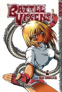 Battle Vixens Volume 01 Hakufu Sonsaku, a young girl blessed with a large chest and what a chest it is, lives in the country with her mother. She is a Toushi, and as such she has a burning desire to beat people up, but her mother has forbidden it. One day at school she encounters a Toushi who wants her to join Yoshuu school, and says if she refuses her new best friend will be a hospital bed. Hearing this, she immediately refuses. After the ensuing battle, Hakufu's mother asks her to leave home and go to Tokyo, where she can develop her abilities as a Toushi, and fight to her heart's content. So she goes to live with her cousin and go to his school. On the first day she takes on half of the school and beats them up but good. This peaks the interest of one of the power Toushi at school who sends his chesty hitwoman who wears a French Maid outfit and has an eye patch to deal with her. The volume ends with the two facing off after the second thug the lead Toushi sends after her gets beaten up by both of them. This is a really silly and seriously ecchi, every fight Hakufu's shirt bursts open and she is a complete nut. One of the best scenes if after beating up half the school on her first day she is with her cousin eating Watermelon and she falls asleep in the middle of eating and does a face plant into her watermelon slice. This series was made into an anime called Ikki Tousen which I have yet to seen but judging by the manga I will like it. If you liked Ranma only about ten times the ecchi and the characters use the word fuck every couple of panels, even the weak cousin uses fuck, this manga is for you. Lots of combat and lots of fan service. |