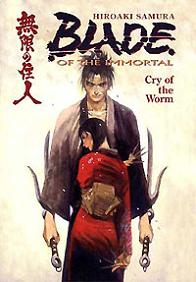 Blade of the Immortal 02: Cry of the Worm Manji and Rin continue their quest to hunt down Anotsu and the members of his evil gang. The first they encounter is carrying the heirloom Chinese swords that belonged to Rin's Father. Rin wants the swords extremely badly because it meant so much to her father so Manji decides to be a kind human and to solve his problem as well. The pair show down in a swamp and Manji learns the dangers of fighting on unfamiliar terrain. The second half is much better, Manji meets another like him, a man cursed with the worms, but he has a secret weapon, a poison that kills the worms in Manji's body and all the wounds he suffered start to come back, including his legs falling off. But thankfully Rin has a home remedy that cures him and he goes to have a showdown with the worm guy for the fate of Rin. But how do you kill a man who can't be killed? Simple if your Manji you just hack him into little teenie tiny bits and pin his severed head to a tree, that seems to do the trick, or will it? The manga is good and fast paced peppered with some good physical comedy. The best joke in this manga comes when a girl drops a tray with tea on it and Rin manages to catch the two cups of tea but the tray hits Manji square in the nose. That is a good idea of making your main character immortal so he can take some serious abuse for comedic effect as well to dramatic battle sequences. |