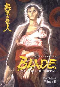 Blade of the Immortal 05: One Silent Wings Part 02 The confrontation between Rin and the mask maker of the Itto-Ryu concludes with him being totally unrepentant and he attacks Rin. He now has a son so he doesn't want to get blood on the floor so he resorts to strangling her. Fortunately Manji arrives and the pair duel in the middle of the room surrounded by cabinets and candlesticks with only knives while unconscious Rin debates revenge. I really think after killing 10 guys you are already on the revenge path and trying to get off it now is going to be more trouble that it is worth. In the end Manji defeats the mask maker just in time for his son to arrive home. The son attacks Manji with a candle holder and he thinks he kills him. Rin helps the young boy bury his father and meets back up with Manji to continue her quest to seek revenge. I like Rin, she is the best character in the manga, the other two Manji and Anotsu aren't exactly sympathetic but she does drive me a little crazy with all her self doubt. She needs to stop it and start taking care of herself, it drives me up the walls which I guess is a good thing because it does illict a strong emotional response, true the response is knock if off you ditz but it is a response nonetheless. A short volume which is mainly fighting and Rin doubting herself, which was most of the last volume as well. Hopefully the self doubting will go away and she will start taking a more active role in her revenge. |