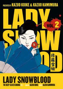 Lady Snowblood 02: The Deep Seated Grudge Part 02 Lady Snowbloods quest for vengeance continues, she first has to secure the whereabouts of the three remaining people she must take her vengeance upon. To do this she teams up with a village of bandits who have the resources to find the trio. But their price is for Yuki to obtain record books from several buddist temples. These books are rather special, they are death records. Now why would bandits want death records, for a simple scam. On the anniversary of the deaths of important or wealthy men they arrive at the widows house and say they were servants of the dead man and had tended the grave in his honor and gets a little money from the pleased widow. But these books are carefully guarded by the buddists priests. In order to get the book Yuki becomes a very special 'friend' of a girl who is dying so when she does pass beyond the veil she can go to the temple and write her name into the book and steal it. Once she brings them the book they manage to give her a name. But before she goes to slice and dice we get a Yuki flashback of her brutal training so she could be strong enough to take her revenge. It shows why she is so bad-ass the whole barrel down the hill would be enough but that was just the first thing in her training. The first person she plans to take revenge against is a woman who runs a death insurance scam that is being muscled out by a life insurance scam run by none other than Yuki. Revenge moves in mysterious ways. While waiting for the next name Yuki gets involved with a blackmail scheme where she is captured by a man mountain who has rather nasty plans for her. This is a great manga that shows off some of the more vice ridden Japanese society, from lesbians to masturbating, it adds much more to the usual swords and sandals of most other samurai tales. This is a great series that maybe a little too racy for most manga fans, it doesn't pull any punches and that is what makes it great. |
