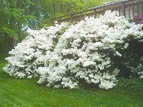 Huge Delaware Valley White azaleas by the deck. These are about 8 feet tall and wide. Azaleas should be pruned right after the flowers die back; otherwise you'll lose a lot of next years buds.
