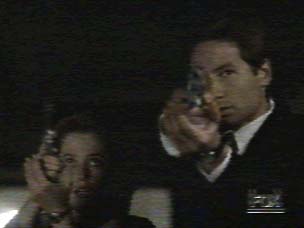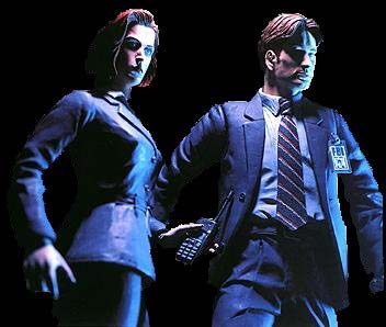 Scene from the movie. Aren't their new shirts nice? The X-Files's scientific explanations mostly offered by Dana Scully played by Gillian Anderson are mostly backed up by famous scientists and simple logic. The Weird Theories put out by Fox Mulder played by David Duchovny are often famous theories and has some truth but on occasions they are real like UFOlogy.