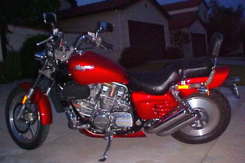 | The '87 & '88 Honda Magna's were the most radical cruisers to ever roll out of Honda.� Some claim that famed designer Arlen Ness collaborated with Honda's Iwakura to design the Magna with an emphasis on "Hot Rod" styling & what was created was a bike that rocked the Industry when introduced in '87.�� The new styling of the Magna did not capture the popularity Honda had hoped and production was cut substantially for '88.� '88 was the last year for the Magna until a re-designed model in '93.� The '87 & '88 Magna's gained a cult following after being discontinued and has become one of Honda's most collectible motorcycles.�They are now affectionately called� "Super Magna" | |||||||||||||||||||||||||||||||||||||||||||||||||||||||||||||||||||||||