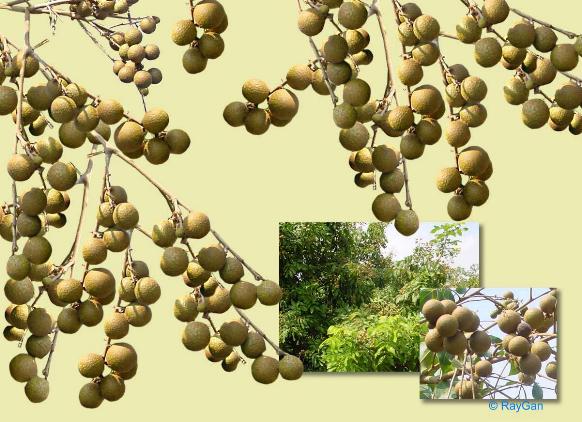 Dimocarpus longan Lour. Also known as dragon's eye. The fruits are small and round and have a single shiny black round seed inside. They grow in clusters and and should be purchase when still firm to the touch.
