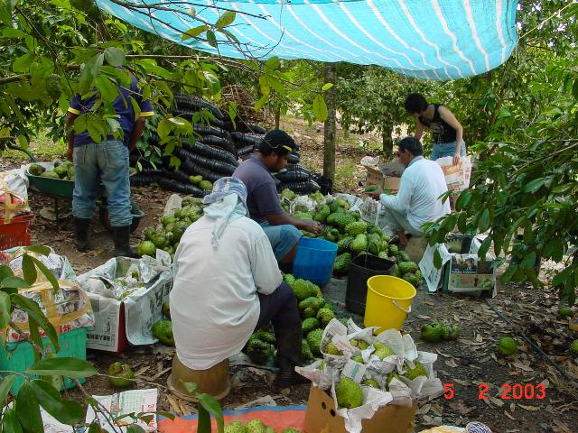 | Fresh Soursop hanging from branches and packaging during harvesting. | |||||||||||||||||||