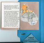 Left hand side of lapbook opened up. Bottom left corner has a folded cup pocket. I covered the front of it with clear packing tape to protect it. It is full of small cutout aquatic animals printed on to cardstock for counting. Upper image is a small tri-fold of my daughter's narration of the story with color page. |