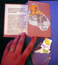 Shows the tri-fold narration book opened up completely. She narrated this into a recorder, and I typed it up afterwards. She just LOVES hearing her "own" stories! (Crease is not present ususally, just shows up when squished on a scanner!LOL)