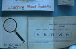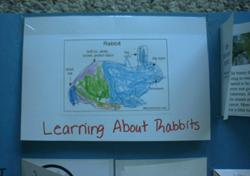 Top extension lifted up to reveal information on rabbits on the underside as well as our vocabulary book. Pictures on the outside, name & definition on the inside.