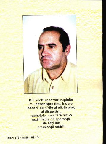 | Invataturile lui... (2) Sa vezi iluzia cu burta la gura si sa n-o crezi, Teodosie, sa nu te bucuri: ea totdeauna pierde sarcina! Aproape haiku (3) Catea flamanda uitata in capul viei- melancolia Aproape haiku (4) Un cep la butia umflata a noptii- luna. Fidelitate La inceput, furand-o privirilor iscoditoare, am iubit-o cu ora. Peste ani mi-a devenit sotie credincioasa: iubita mea, singuratatea. Viata ca o inregistrare contabila In amintirea contabilului Spiru Gird "Activul este egal cu pasivul, viata si moartea sunt conturi corespondente"- conchideam noi resemnati, in timp ce sperantele ni se intorceau mereu cu buza umflata, in timp ce curva de viata se pregatea sa ne insele, sa ne lase lefteri, fluturandu-ne prin fata bancnota falsa a gloriei. Verificam scrupulosi bilantul acestei vieti luata pe credit dar dupa noi venea mereu Dumnezeu, Marele expert contabil, si facea El lumina in prea-incalcitele noaster inregistrari. Cand plateam consumatia la crasma noi faceam o mare eroare, prietene: in loc de bani, noi plateam, de fapt, cu viata noastra, cu aceasta amarata si unica viata, atunci, acum si-n vecii vecilor, amin! |