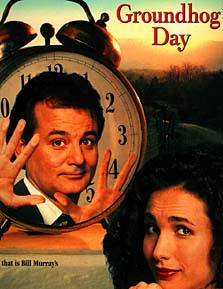 Movie Poster, with Bill Murray clock prisoner and Andiw McDowell