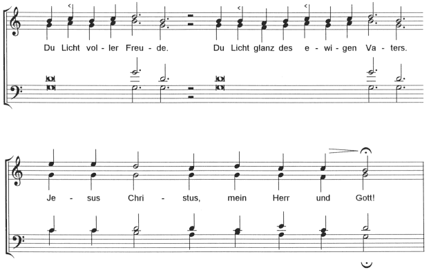 Alle: Du Licht voller Freude, Du Lichtglanz des ewigen Vaters.