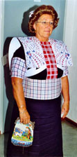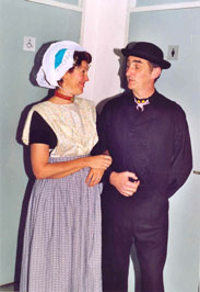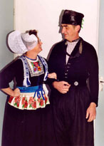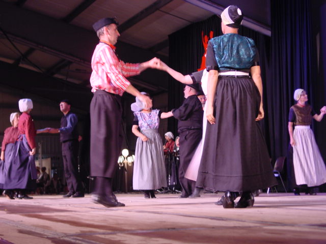 Danskleding Om de authentieke kleding te sparen wordt er opgetreden in kostuums uit Brabant, Arnemuiden: daags of zondags of de Urkse dracht. Dit zijn zeer goed gelijkende kopieen van lichtere en beter wasbare stoffen. |