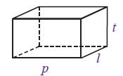 Misalkan, rusuk-rusuk pada balok diberi nama p (panjang), l (lebar), dan t (tinggi) seperti pada gambar. Dengan demikian, luas permukaan balok tersebut adalah