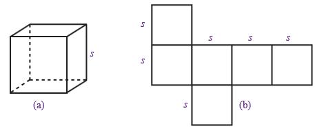 Dari gambar 5.7 Kubus beserta jaring-jaringnya. Untuk mencari luas permukaan kubus, berarti sama saja dengan menghitung luas jaring-jaring kubus tersebut. Oleh karena jaring-jaring kubus merupakan 6 buah persegi yang sama dan kongruen maka ,