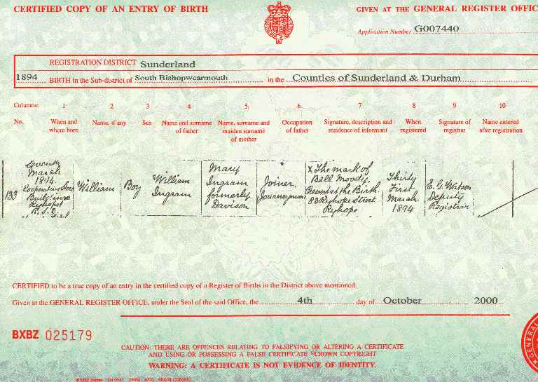 | BIRTH: | 7 March 1894 - Co-operative Store Buildings, Ryhope, Sunderland |
