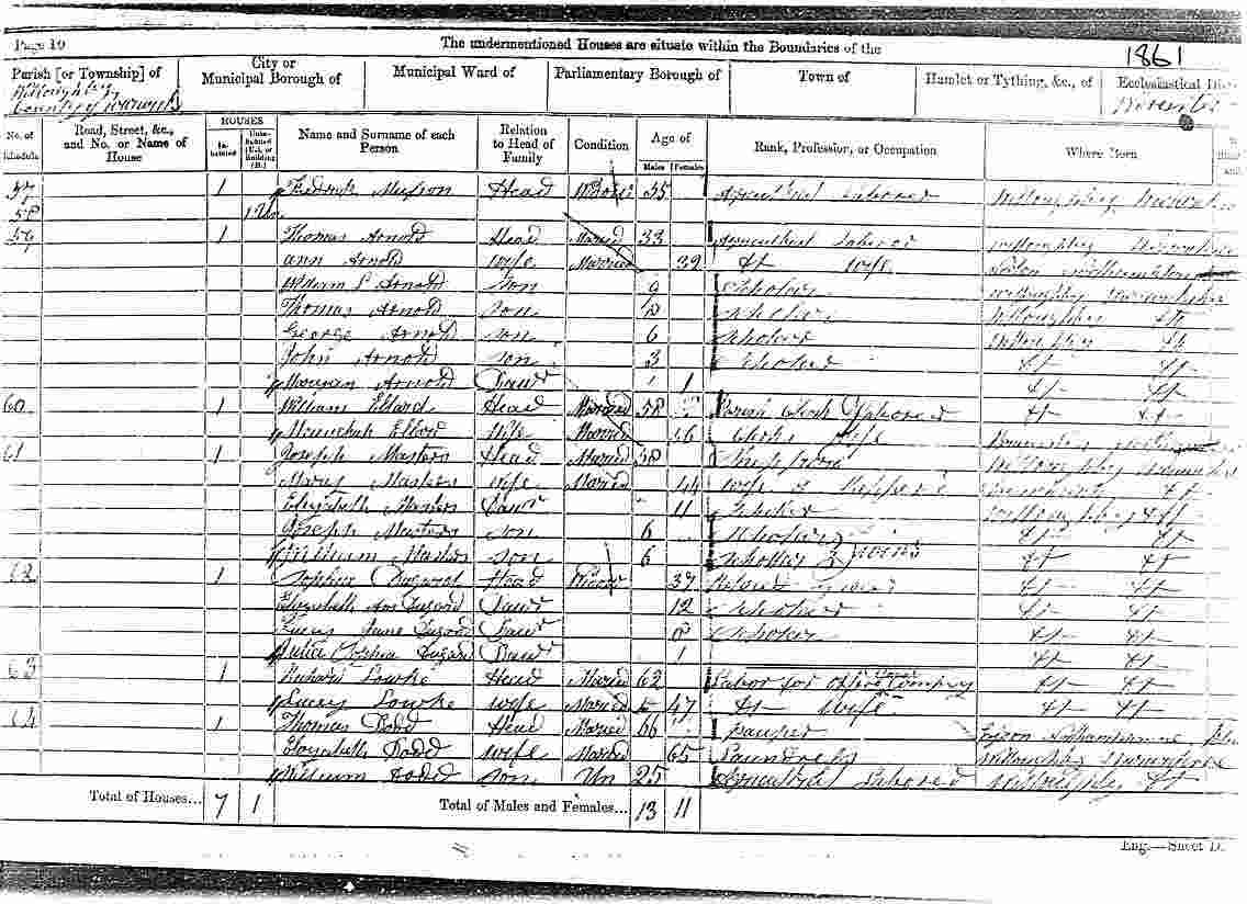 The village only had 60-100 inhabitants and there were five households of Masters. By the time of the first census in 1841 Joseph was married and had moved out of his parent's home. Joseph had his first four children (Charlotte, John, Sarah and William) with his first wife, Elizabeth Grant. Elizabeth died on 16 December 1846 of consumption but Joseph re-married eighteen months later on 25 April 1848. His second wife was Mary Baydon (formerly Lord) was also a widower and fourteen years his junior. Joseph records his residence as Willoughby while Mary records hers as the nearby parish of Dunchurch. Joseph was not able to sign the register, only making his mark, suggesting he could not read or write. Mary is the mother of his last three children; Elizabeth, Joseph and William. Also, the eldest of these last three is named Elizabeth, possibly in honour of his dead first wife. In all of the census records Joseph was listed as an Agricultural Labourer. In fact, nearly all of the village was employed in this capacity. The last time Joseph is listed in the census records is in 1881. He is recorded as being a 79-year-old agricultural labourer. He is still living with his wife, Mary, and his son, Joseph, who is listed as a widower. Joseph died on 31 March 1891, aged approximately 89. He died just a few days before the 1891 census was due to be taken. |