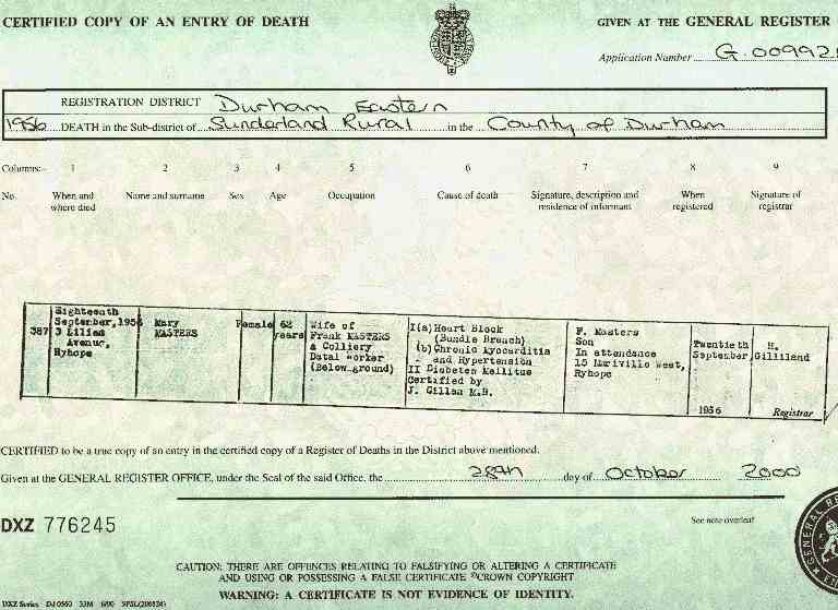 ![]() Mary Masters' Death Certificate |