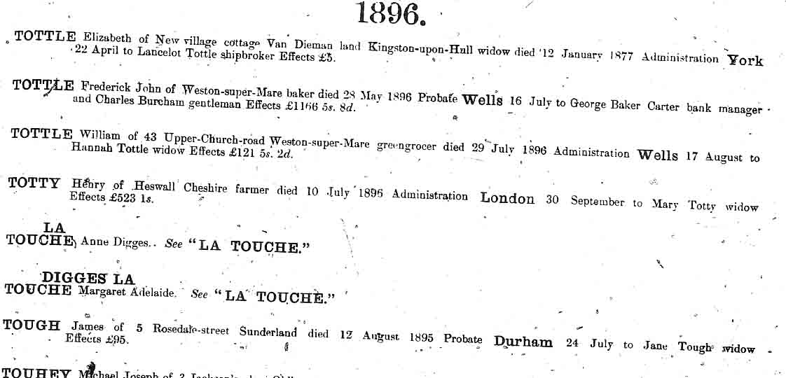 James Tough was born in approximately 1837. He was christened in Aberdeen on 18 April 1837. His parents were Peter Tough and Anne Keith. He had two brothers John and Alexander. Oral history passed down through his family suggest that two Tough brothers came to Sunderland from Aberdeen, had an argument and fell out. This is likely to be James and his brother, Alexander (b.1835). They were both born in Aberdeen and were the first generation to settle in Sunderland. This is likely to have been after 1861 as both brothers named their first-born sons after the other brother, Alexander's son James in 1860 and James's son Alexander in 1861. James married Jane Hutchinson and they had at least ten children. James died on 12 August 1895 in Sunderland. There was a probate on his will on 24 July 1896 in Durham. His widow, Jane Tough was confirmed as executrix of the will which was worth approximately �95 in effects. |