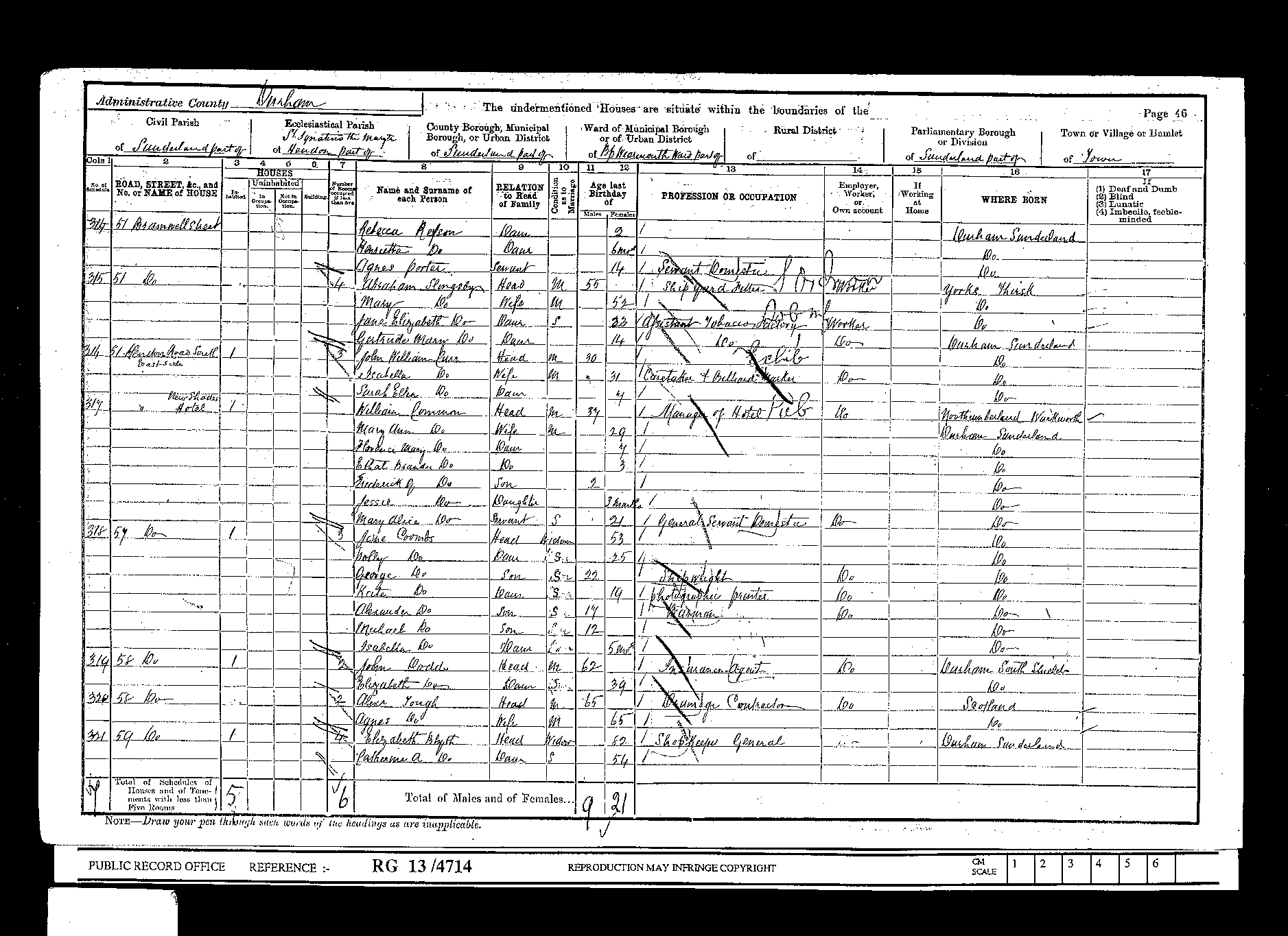 Grosvenor Street, Gateshead 1856 44 Castle Street, Sunderland - 1866 28 Cousin Street, Sunderland - 1881 58 Hendon Road South, Sunderland - 1901 |