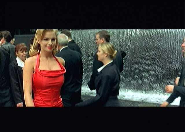 The woman in the red dress. |