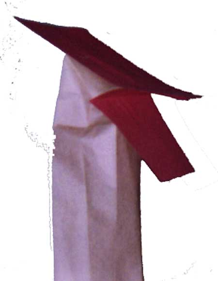Your next step is to cut the top of the head and the mouth into whatever shape you want. One warning, though: You can cut the paper into any shape or size as long as you DON'T CUT THE BAG! (I generally have to go around and show everyone how to tell where the bag stops, so they can avoid cutting into it when shaping their mouths, and still a few usually manage to do it. That's why the extra bags, and why I always make one myself, which I can let a student have if one makes a mistake.) |