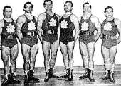 | It was Jean who started all this. He answered a challenge made by a wrestler in Qu�bec City in 1947 to lift a very heavy weight. Jean impressed everyone at La Tour Arena that he shadowed the poor wrestler who was the only one able to lift such a heavy load... Then, he invited his brothers to put an act together and do a strongman demonstration show. Along with the Dionne Brothers, a duo of acrobats, the six brothers toured from 1947 to 1949 around Qu�bec, the Maritimes, New England and Ontario. They drew crowds everywhere. Their show consisted of streingth demonstrations, acrobatics and human pyramids. |