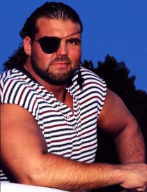 | But still the American promotions present their occasionnal shows in Montreal. Though Dino Bravo has retired (to his unlucky fate in March 1993), the Rougeaus were still the talk of the town in wrestling. Jacques Rougeau Jr wrestled in solo and happened to win a WWF belt under the name of Mountie (yes the RCMP mountie !). However, he kept the Intercontinental belt for a week, until he was beated by one Bret Hart...Afterwards, Jacques took a young buck named Pierre-Carl Ouellet, a wrestler who wrestled with an eye-patch due to a childhood accident (he had a caracter of a pirate). Along with manager Johnny Polo (who later will become the Raven...), they won the WWF tag team belt in 1993 against the Steiners... | ||||||||||||||||||||||||||||