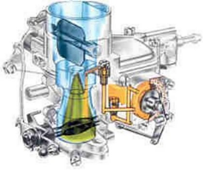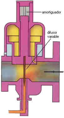 | Carburador SU: Este tipo de carburadores son aquellos que tienen el surtidor y el difusor de secciones variables. La depresi�n del difusor aumenta directamente con la velocidad y a mayor depresi�n tambi�n es mayor la elevaci�n del pist�n y la secci�n del difusor; lo cual tiene como resultado el mantenimiento de una velocidad constante en el difusor y el surtidor. |