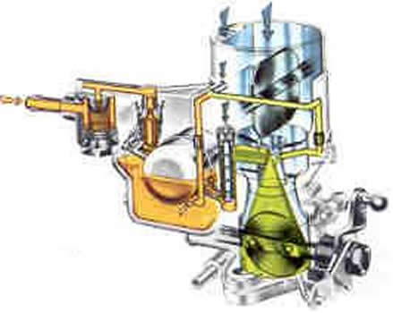 | En marcha normal, la mariposa est� totalmente abierta. La depresi�n aumenta y el pist�n que est� sometido en su parte superior a dicha depresi�n sube, aumentando as� progresivamente la secci�n de paso de aire y gasolina. | ||||||||||||||||||||||||||||||||||||||||||||||||||||||||||||||||||||||||||||||||