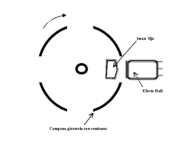 | SENSOR HALL HUBICADO FRENTE A UN IMAN FIJO Y CAMPANA GIRATORIA CON VENTANAS | ||||||||||||||||||||||||||||||||||||||