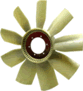 | 6. El Ventilador El ventilador no solo env�a una corriente de aire alrededor del motor, sino adem�s absorbe el aire de la atm�sfera (fresco) y lo hace pasar a trav�s del n�cleo del radiador a mayor velocidad proporcionando un adecuado enfriamiento. El ventilador es accionado por el motor mediante un acople en el eje de la bomba de agua y se impulsa con una correa (banda) desde la polea del cig�e�al. Algunos ventiladores incorporan un embrague con fluido de impulsi�n para controlar las velocidades respecto con las demandas de enfriamiento. |