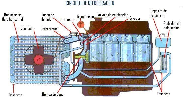 | Cuando el l�quido refrigerante se enfr�a, se contrae creando as� un vac�o resultante en el sistema de enfriamiento; este vac�o hace que el l�quido se retire del dep�sito y entre al sistema de enfriamiento a trav�s de la v�lvula de vac�o ubicada en la tapa del radiador o del vaso de expansi�n evitando la entrada de aire al sistema lo que puede producir oxidaci�n de las partes. | ||||||||||||||||||||||||||||||||||||||||||||||||||||||||||||||||||||||||||||||||||||||||||||||||||||||||||||||||