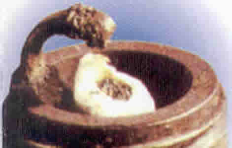 | Motor con detonaciones: Los aisladores pueden estar rajados o astillados, provocados por mal ajuste en la separaci�n de los electrodos. |