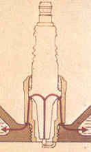 | El aislante tiene una doble funci�n: La primer es asegurar que la alta tensi�n producida por la bobina, sea conducida por el electrodo central y no se desv�e en otras direcciones. Dicho aislante debe impedir la dispersi�n de corrientes con voltajes superiores a los 30000 V. dentro de un rango de temperaturas que oscila entre los -46 �C y los 930 �C. Como segundo objetivo est� lograr disipar el calor producido en la c�mara de combusti�n. Los electrodos deben poseer �ptimas propiedades el�ctricas para reducir al m�nimo el voltaje requerido para el salto de la chispa y al mismo tiempo debe soportar altas temperaturas y la corrosi�n producida por los gases de la combusti�n y la erosi�n el�ctrica. La base del aislador se encarga de no permitir el contacto entre ella y el electrodo central y entre ella y el cuerpo met�lico de la buj�a. |