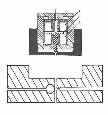The pulsed nozzle used in these experiments is conceptually similar to the double solenoid design of Grant21,22 (see Figure 4 for side view). The valve is driven by two electromagnetic solenoid coils allowing for the nozzle to easily produce pulses of 200-400 us duration. The magnetic actuator (labeled C) consists of a disk (.3 mm thick, 12.8 mm diameter) and a plunger (2.5 mm diameter, .5 mm long) constructed from a single piece of ferromagnetic material for strength. The disk is placed between the pole faces of the coils which are separated by a 1.3 mm thick aluminum ring. The plunger extends through a bronze bearing fit within the center of the front (close) coil. The face of the plunger is what actually seals against an o-ring (Parker 0.002-2) on the face plate of the nozzle housing.