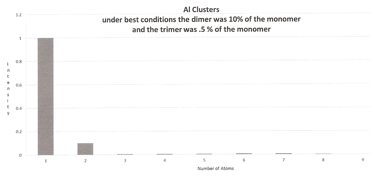 The initial experiment involved the misalignment of a focused pulsed laser beam direct down the molecular beam axis at the nozzle assembly. This led to vaporization of some part of the nozzle housing (most likely the inner edge of the orifice) and the accidental observation of the production of small Aln clusters ( n < 6 ) .