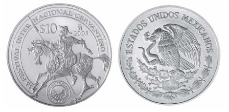 | Festival Cervantino Coin Design: Don Quijote on his horse - $10 1 oz. of .999 silver |