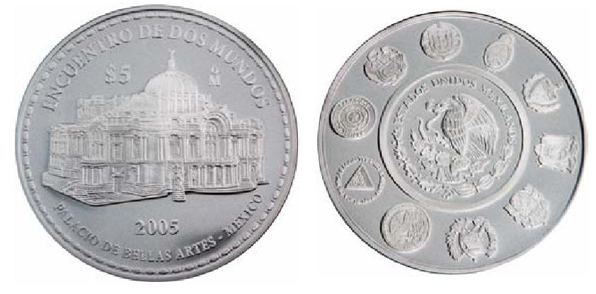 | VI Iberoamerican Series silver coin "Architecture and Monuments" Design: View of the "Bellas Artes Palace" - $5 27 grs. of .925 silver |
