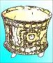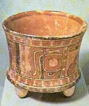 Tripode vessel with some hieroglyphics and ornamentation motives . The basic color is orange, it characterizes from the Mayan classic period, on the walls there are signs, characters and expressions painted on them. |