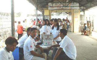 | Personnel from the Health Office join members of the Philippine National Red Cross as they conduct first aid services during the All Saint�s Day at the local cemeteries of the town. November 1, 2005 |