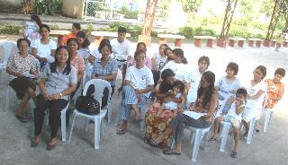 | The nursing students of Virgen Milagrosa conducted a Mother�s Class in Barangay Bued to provide proper information and skills for the mothers on various health issues. November 15, 2005 |