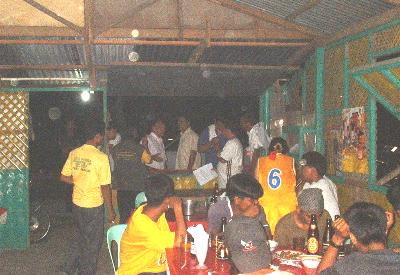 | Ocular inspection of the night spots, videoke bars and restaurants within the jurisdiction of Calasiao was undertaken in preparation for an ordinance regulating the operations of these types of establishments. The team was composed of several local government agencies led by the Municipal Vice Mayor, Ferdinand Galang. Feruary 5, 2005 |