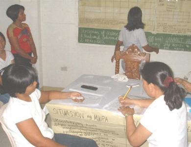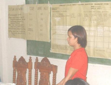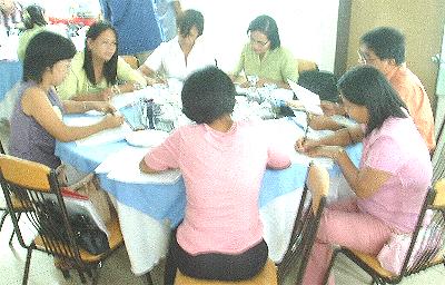 | The Barangay Service Point Outlets and Barangay Health Workers underwent training on how to properly fill up the modified CBFPMIS forms that will serve as their matrix in performing their survey of women in the locality needing FP services. May 12-16, 2005 |